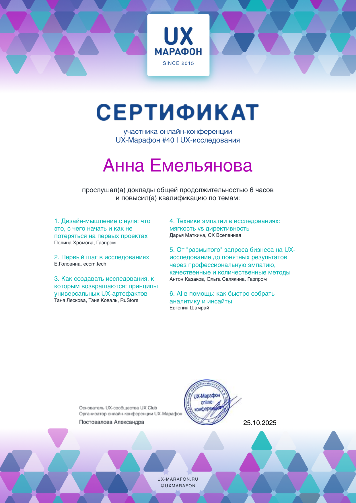 Участник онлайн-конференции UX-исследования
